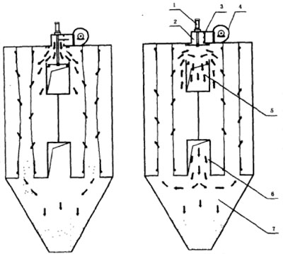 1-提升切換閥;2-反吹風(fēng)管;3-截止閥;4-反吹風(fēng)機(jī);5-排氣管;6-進(jìn)風(fēng)管;7-灰斗