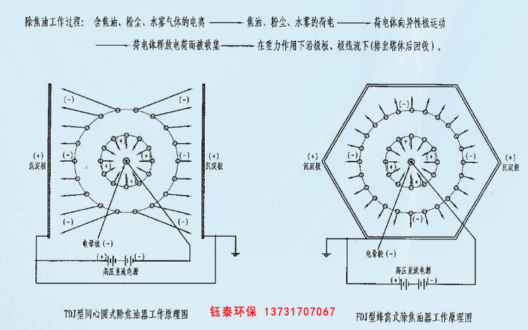 靜電除焦油、油煙、煙塵技術(shù),廣泛應(yīng)用于化肥、焦化、冶金、建材、碳素、蘭碳、城市煤氣等行業(yè)的氣體凈化和液霧的收集。在靜電除焦油器中除去氣體中的焦油、水霧、粉塵后,同時(shí)將煤氣、焦?fàn)t氣中的焦油收集后于以回收。氣體經(jīng)凈化后,對保證工藝流程中后序設(shè)備一壓縮機(jī)、其它工藝設(shè)備、閥門、管網(wǎng)等的正常穩(wěn)定運(yùn)行,起著至關(guān)重要的作用,所以,靜電除焦油器是理想的具有氣體凈化和焦油回收雙重效果的環(huán)保設(shè)備。