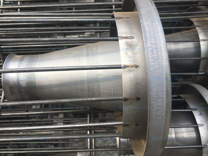 1、除塵器骨架采用圓型結(jié)構(gòu),袋籠的縱筋和反撐環(huán)分布均勻,并有足夠的強度和剛度,防止損壞和變形,頂部加裝冷沖壓短管,用于袋籠的垂直及保護濾袋口在噴吹時的磨損。