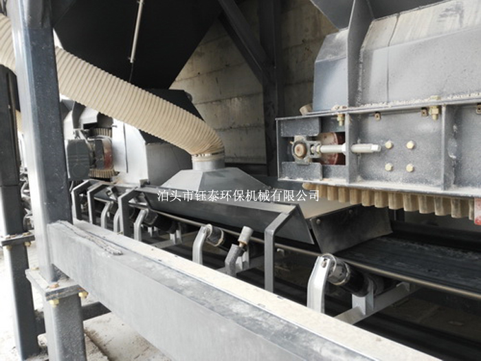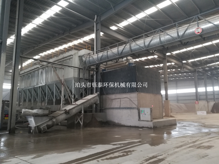 脈沖除塵器定時(shí)清灰,清落的粉塵由回粉螺旋送至干燥滾筒進(jìn)料皮帶,重新回收利用。