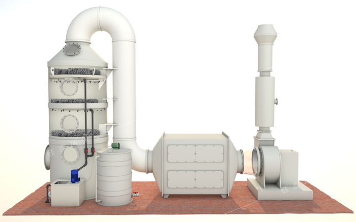 噴淋洗滌工藝對于各種腐蝕性氣體凈化處理效果明顯,能有效去除氯化氫氣體(HCl)、氟化氫氣體(HF)、氨氣(NH3)、硫酸霧(H2SO4)、鉻酸霧(CrO3)、氰氫酸氣體(HCN)、堿蒸氣(NaOH)、硫化氫氣體(H2S)、福爾馬林(HCHO)等水溶性氣體。